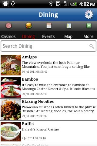 download Enterprise Medias free Inland Casinos app today to get all the latest information on Inland Southern Californias popular gaming establishments. Event and dining information is constantly updated for 11 casinos within easy driving distance of almost anywhere in the L.A. Basin:Agua Caliente, Fantasy Springs, Spa and Spotlight 29 casinos in the Coachella ValleyPechanga and Pala in TemeculaMorongo Casino in CabazonSan Manuel in HighlandSoboba in San JacintoHarrahs and Pauma in northern San Diego CountyGet detailed reviews of each casinos restaurants and cafes, and the latest news on the performers and other acts that book at the casinos. Youll also find information on hotel rooms, golf courses and spas at or near each casino.Whether youre planning to hit the buffet, see a favorite band or performer, or try your luck at some of the hundreds of tables and slot machines, the Inland Casinos app is your ticket to a day or evening of fun at an Inland Southern California casino