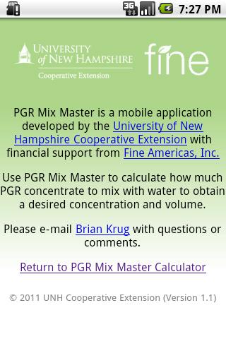 PGR Mix Master is a tool to assist commercial greenhouse personnel in calculating correct dilutions for plant growth regulators. The application was developed by the University of New Hampshire Cooperative Extension with financial support from Fine Americas, Inc.