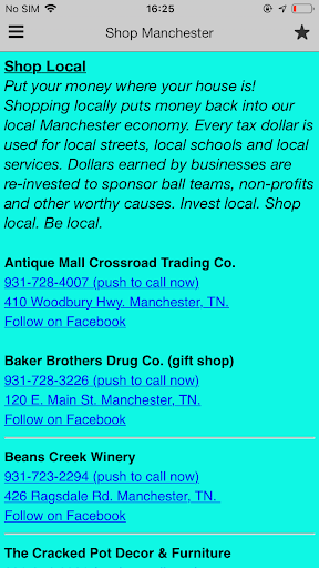 - ค้นหาธุรกิจในท้องถิ่น: เพลิดเพลินไปกับปลายนิ้วเข้าถึงหมายเลขโทรศัพท์ที่อยู่และหน้า Facebook ของร้านค้าในท้องถิ่นร้านอาหารโบสถ์กิจกรรมสันทนาการและอื่น ๆ ! ต้องการโทรในการดำเนินการตามลำดับไปยังร้านอาหารท้องถิ่นหรือไม่? ต้องการทราบว่าร้านโปรดของคุณเปิดให้บริการวันนี้หรือไม่? บางทีคุณอาจต้องการทราบวิธีการเช่าทุ่งนาที่สวนสาธารณะในพื้นที่? เพียงแค่เรียกดู "กิน" "ร้านค้า" หรือ "สุขภาพและการพักผ่อนหย่อนใจ" กดหมายเลขโทรศัพท์และคุณทำเสร็จแล้ว ไม่มีการค้นหา Google หรือสมุดโทรศัพท์ที่เหนื่อยล้าอีกต่อไป ข้อมูลทั้งหมดที่คุณต้องการในที่เดียว!
