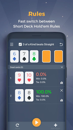 แอพนี้ใช้วิธีการจำลอง Monte Carlo ในการคำนวณตราสารทุนของผู้เล่น มันสร้างการทดลองจำนวนมากเพื่อมาบรรจบกันผลลัพธ์ที่ถูกต้อง สำหรับสถานการณ์ที่ซับซ้อนอัตราต่อรองสามารถคำนวณได้เร็วขึ้นด้วยวิธีนี้มากกว่าการแจกแจงกรณีที่เป็นไปได้ทั้งหมด (เนื่องจากมีบางกรณีที่เป็นไปได้มากเกินไป)