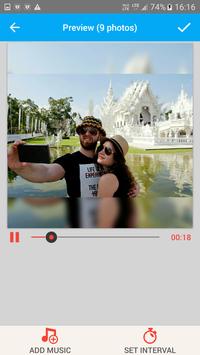 You select photo from camera and gallery. Also you arrange the photos in different order with the perfect background, music and animation to create a video of your own.