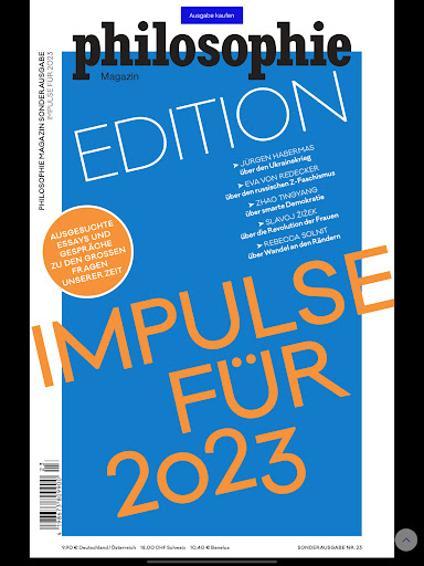 เราอยู่ได้เร็วเกินไปหรือไม่? งานทำให้ทำงานได้หรือไม่? Magazin ปรัชญามองคำถามสำคัญของชีวิตและสังคมจากมุมมองทางปรัชญา นิตยสารปรากฏขึ้นสองเดือนและมุ่งเป้าไปที่ผู้ชมที่กว้างและสนใจโดยทั่วไป ด้วยหนังสือเล่มเล็กแต่ละเล่มอาหารกับตำราดั้งเดิมของนักปรัชญาคลาสสิก