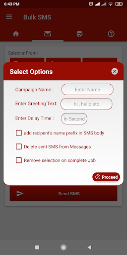ส่ง SMS โดยใช้ SIM Network - ตัวเลือกการหน่วงเวลาที่กำหนดเอง