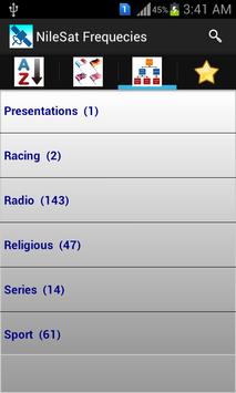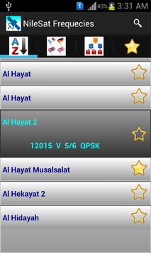 ترددات أكثر من 1000 قناة من قنوات النايل سات تبويب كامل للقنوات بالبلد وبالنوع (رياضة، أخبار، راديو ... ألخ) إمكانية البحث بإسم القناة أو بجزء من الاسم امكانية تحديد القنوات المفضلة للرجوع إليها فيما بعد
