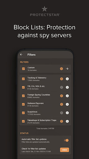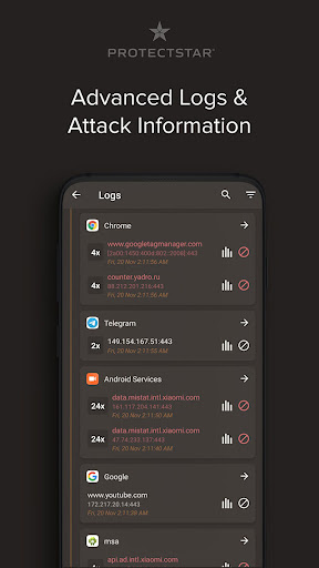 Wouldn't it be great if a firewall security could do much more than spy detection including hacker protection against hacker attacks? The Protectstar™ no-root firewall AI was specially developed as a cybersecurity app to block unwanted access by known intelligence services & government organizations for anti hacker security privacy. With our integrated Intrusion Prevention System (IPS), all known servers & IP addresses from the FBI, CIA, NSA, GCHQ, & many more are automatically blocked. Besides, with wifi blocker you are protected from known spy servers with anti spy hacker protection in countries such as China, Iran, & Russia, as well as from spyware, malware & mobile trackers.