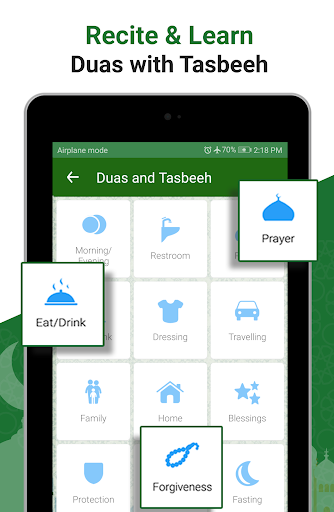 with qibla compass, Prayer times,99 names of Allah, Mosque finder, halal food finder and more in one single app. It will allow you to recite duas and quran at any place anywhere on your smartphone. Try it now and rate us for further improvements and changes if necessary.