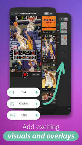 ใช้อุปกรณ์และมุมกล้องมากเท่าที่คุณต้องการ- คุณสามารถเชื่อมโยงโทรศัพท์ได้มากถึง 12 เครื่องและ/หรือแท็บเล็ตลงในห่วงโซ่สตรีมสดสำหรับประสบการณ์ที่ผู้ชมดื่มด่ำมากขึ้นสลับระหว่างมุมกล้องบ่อยครั้งในระหว่างการสตรีม (เทียบกับการผลิตกล้องเดียวที่ทำให้หาวาย)