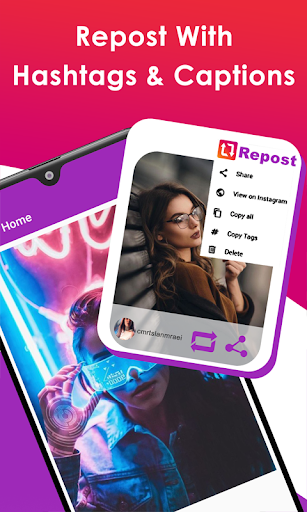 Re-poster- Reposter for Instagram lets you repost Instagram photos and videos without adding watermarks. also lets you save Instagram photos to your phone. You repost Instagram photos right from Instagram with ease.