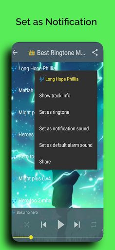 เพลงอะนิเมะที่ยอดเยี่ยมคุณจะพบว่าน่าสนใจและเท่ห์มาก ป้อนรายการอนิเมะของ "เสียงเรียกเข้าฟรีที่ดีที่สุดสำหรับ 2020" และเลือกวิดีโอเพลงอะนิเมะที่คุณชื่นชอบในการเล่นและตั้งเป็นเสียงข้อความเสียงเรียกเข้าการแจ้งเตือน SMS เสียงปลุกและแน่นอนว่าเป็นเสียงเรียกเข้าเริ่มต้น