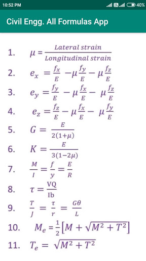 Download the new Civil Engineering Formulas Free application a content application, civil engineering form as support material for your work, education and study of the subject that you can download and share with your friends. available for Android devices.