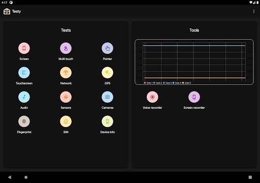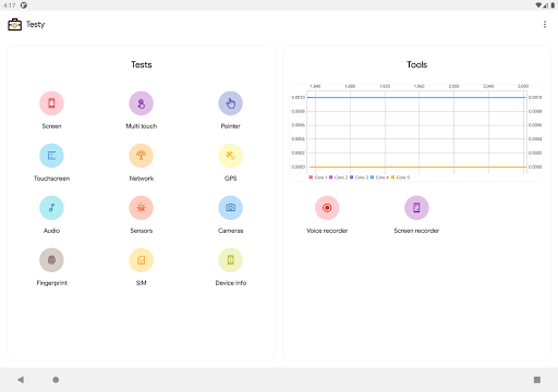 ด้วยแอพนี้คุณสามารถทดสอบคุณสมบัติฮาร์ดแวร์ทั้งหมดของอุปกรณ์ของคุณรวมถึงกล้องเสาอากาศและเซ็นเซอร์แอปจะแสดงข้อมูลที่สมบูรณ์เกี่ยวกับอุปกรณ์ของคุณ