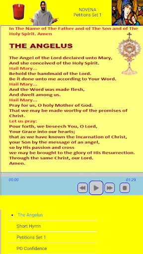 The 'Novena with audio simultaneously projects the lyrics. The 'Nocturnal Adoration' prayer has been added.