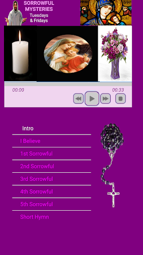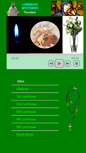 4 ลึกลับของลูกประคำ ถูกสร้างขึ้นในสีที่ต่างกันเพื่อการจดจำได้ง่าย 'พ่อของเรา' "Hail Mary 'และ' Glory Be 'ถูกแยกออกเป็น 2 ส่วนครึ่งที่ 1 พร้อมเสียงชาย / หญิงและครึ่งหลังที่ 2 ต่อมาเปลี่ยนไป
