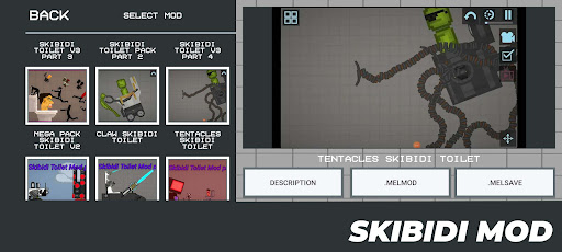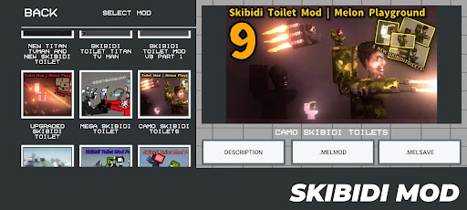 - Melmod and Melsave Toilet Skibids for Melon Playground;