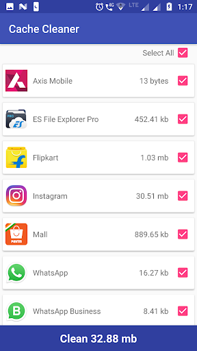 Cache cleaner is light weight application to clean your applications cache files. Free up memory by cleaning selected apps unwanted cache files