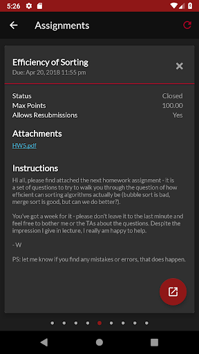 • View your assignments and their details, and download attachments or visit links in assignment descriptions; submit assignments by uploading attachments directly from your mobile device