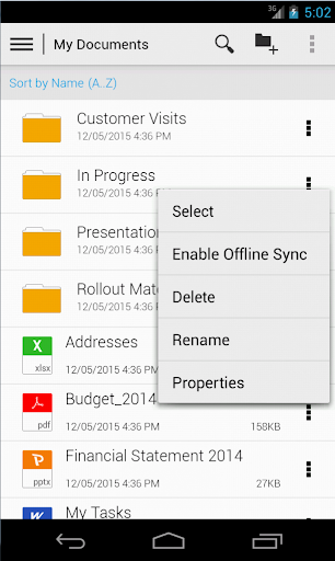 • Sync documents to your Android device for offline access in secure and encrypted storage
