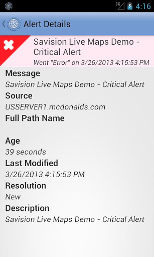 You get to pick your essential Live Maps views and consult alerts and issues surrounding these maps. Alert details such as age, source and description are provided for each alert. Even get notified when a Live Map changes state, regardless of whether an alert was raised. This is contrary to what System Center provides as a standard.