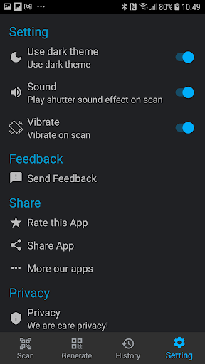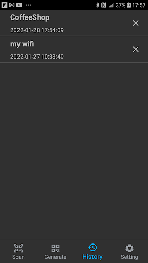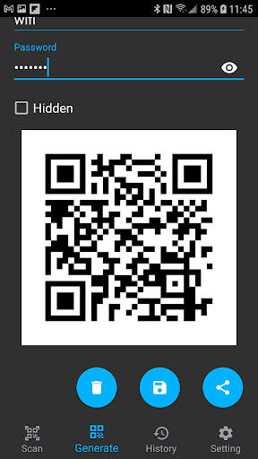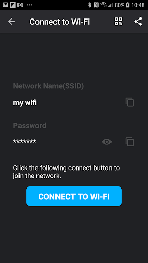 This apps for you easy get any WiFi password from the QR Code in your friend's phone or any displayed WiFi QR Code ! Support generate WiFi QR code and scan history!