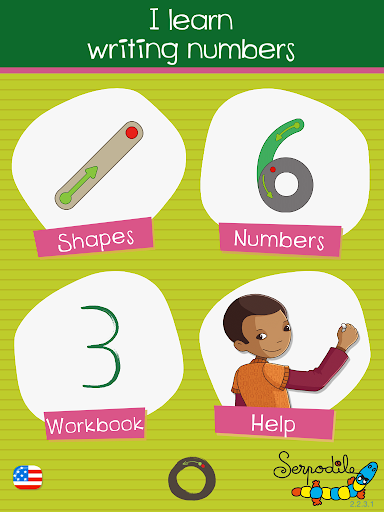 Serpodile offers a new method for learning writing numbers by decomposing the numbers in basic shapes (circle, slanted line...) using visual and audio directions.