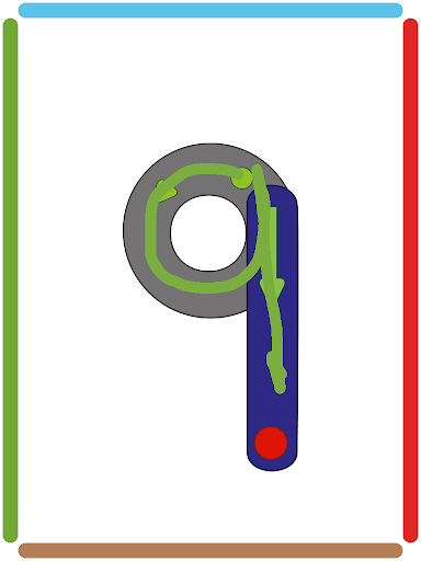 * A colorful frame to help children orient themselves in space (ground, sky, beginning/green, ending/red )