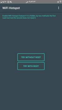This is a simple app to enable WiFi Hotspot with two methods. 1 - Method one Without Root. 2 - Method two Need Root.