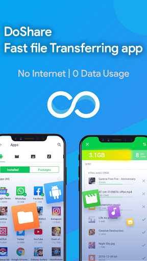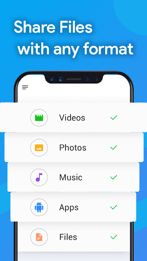 Fast share and transfer music, movie, video, app, film, file without mobile data.