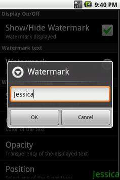 This application helps you add a watermark to your phone. The applied watermark could be seen even if you open other applications...