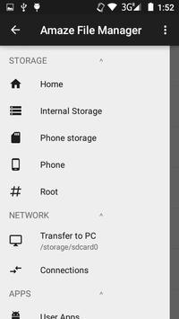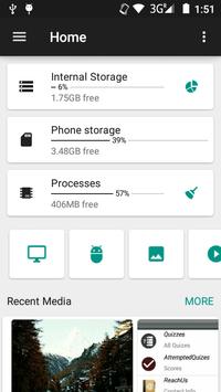 Show internal storage, External storage, root, ftp, user apps, system apps, processes, recent, images, video, , recent media.