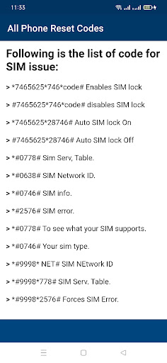 แอพนี้ไปที่รหัสโทรศัพท์มือถือทั้งหมดโทรศัพท์มือถือทุกตัวมีรหัสรีเซ็ตเพื่อเข้าสู่รหัสรีเซ็ตวิธีง่ายๆในการปลดล็อคซิมการ์ดใด ๆแอพนี้จะช่วยให้คุณปลดล็อก SIM Card Easy Guide ของคุณล็อครหัสบริการสำหรับอุปกรณ์ Android ที่คุณไม่สามารถจดจำรหัสเหล่านี้ได้อีกต่อไปบางรหัสเหล่านั้นทำให้สะอาดเพื่อทดสอบความสามารถของสมาร์ทโฟนเครื่องมือทั้งหมดเช่น Samsung, Sony, Motorola, Blackberry, China, HTC, LG และ OPPO