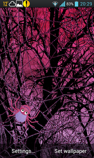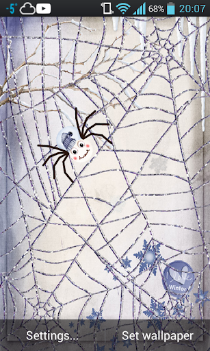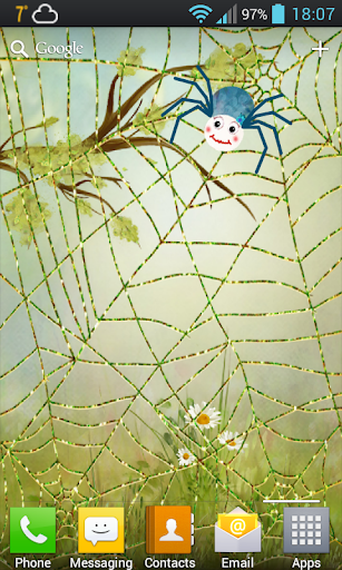 Here it is! A live wallpaper and its main character - funny spider. He wove a cozy web on your screen and settled on it. The spider is very cheerful. He is always at your service running around the web carrying out your tasks. However, the spider is a big sleepyhead and falls asleep as soon as possible; and it's not that easy to wake him up! Cartoon spider will become your faithful peppy friend.