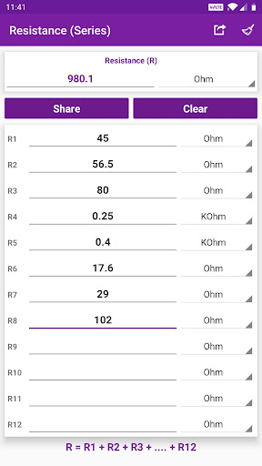 เครื่องคิดเลขไฟฟ้ามีเครื่องคิดเลข 45 เครื่องที่สามารถทำได้อย่างรวดเร็วและ คำนวณพารามิเตอร์ไฟฟ้าที่แตกต่างกันได้อย่างง่ายดาย การคำนวณและการแปลงอัตโนมัติกับทุกหน่วยและการเปลี่ยนแปลงมูลค่า