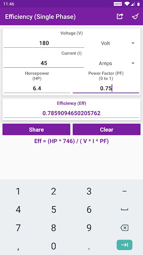 •แรงม้าเฟสเดียว เครื่องคิดเลข