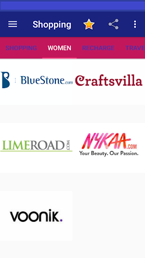 Here we've included many shopping websites like - Amazon,Craftsvilla,Voonik,Freecharge,Jio,MakeMyTrip,Redbus,Foodpanda,Mcdonalds,Justdial,Patanjali,Bigbazaar,Pepperfry,Vistaprint,Archies,GiftLove,1img,Medlife and many more shopping sites for online shopping India.
