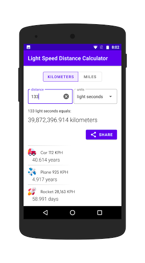 calculate how far light travels in mph and kph, you can select from light seconds, light minutes, light hours, light days and light years