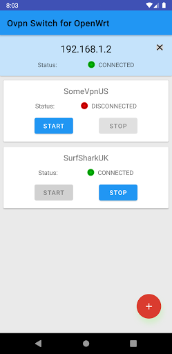 แอปพลิเคชั่นนี้อนุญาตให้ผู้ใช้ควบคุมไคลเอนต์ OpenVPN ที่ทำงานบนเราเตอร์ด้วยซอฟต์แวร์ OpenWrtในการใช้แอปพลิเคชันนี้จำเป็นต้องตั้งค่า OpenVPN บนเราเตอร์ก่อนหน้านี้ - แอปพลิเคชั่นนี้ทำหน้าที่เป็นสวิตช์ง่าย ๆทำงานเฉพาะเมื่ออุปกรณ์เชื่อมต่อกับ Wi-Fi เดียวกันกับเราเตอร์