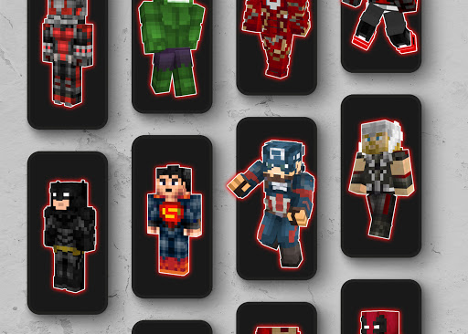 คุณจะพบกับสกิน McPe Superhero ที่ยอดเยี่ยมและยอดเยี่ยม แอพนี้ใช้งานง่ายมากเพียงคลิกที่ปุ่มเพื่อเริ่มเล่นกับ Superhero Skin Minecraft ที่คุณชื่นชอบหรือโดยการดาวน์โหลดก่อนฟรี