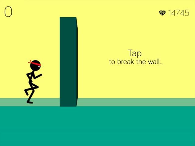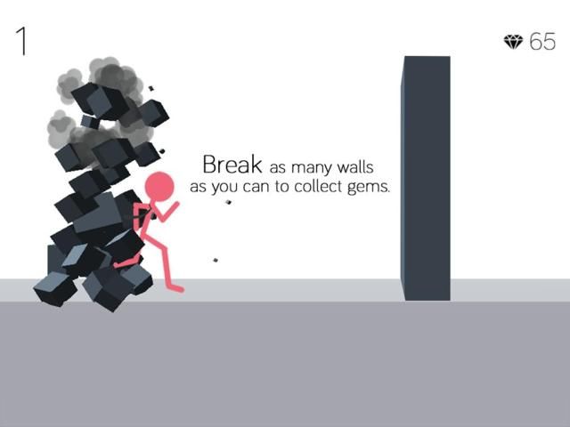 The Stick figure runs alone, you just need to tap the screen at the right time to break the wall with his fist and not your sloppy head. Beware that this game is designed with the mindset "easy to play but hard to master."