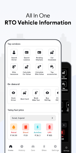 Find complete RTO vehicle information or Indian vehicle details RTO app of any parked, accidental, or theft vehicle by just entering the vehicle registration number. You can get information on ownership, pending traffic e challans, rc , vehicle type, make, model, insurance, fitness, pollution, black list status, financier (hypothecation) details etc.