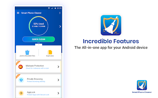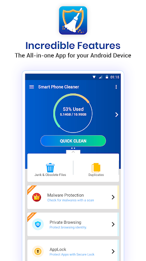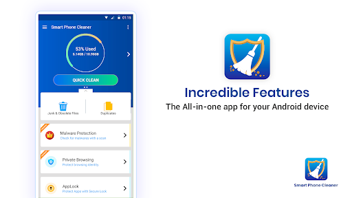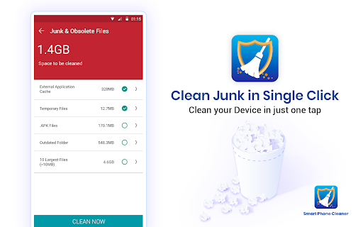 สมาร์ทโฟนทำความสะอาดเป็นแอพทำความสะอาดที่อุดมไปด้วยคุณสมบัติสำหรับผู้ใช้ Andorid มันช่วยให้คุณในการเรียกคืนพื้นที่จัดเก็บข้อมูลบนอุปกรณ์ Android ของคุณโดยการทำความสะอาดขยะและลบไฟล์ล้าสมัยหรือไฟล์ที่เหลือ