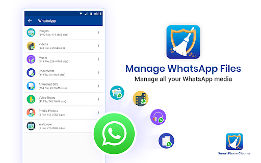 ✓ WhatsApp Media Cleaner: เรียกคืนพื้นที่เก็บข้อมูลที่มีค่าบนโทรศัพท์ Android ของคุณโดยการลบไฟล์สื่อที่ไม่ต้องการออกจาก WhatsAppเลือกและลบไฟล์เฉพาะเพื่อเพิ่มพื้นที่ว่างได้อย่างง่ายดาย