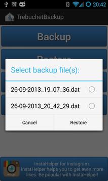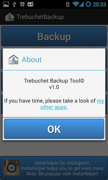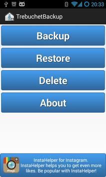 TrebuchetBackup - backup tool for Trebuchet Launcher Work with this application is very easy. Just click what you want to do. known bugs: widgets don't restore properly NEED A ROOTED PHONE OR PAD with Trebuchet Launcher!