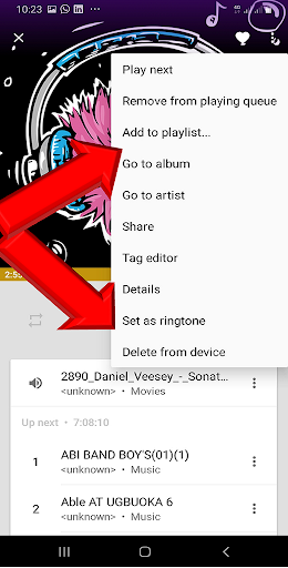 Tap the track you want to play, drag the tray from bottom of the screen to reveal other details.