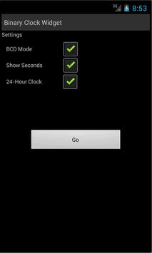 A customizable Binary Clock Widget to run on your home page. Choose between regular or BCD mode. Hide seconds and select 24 or 12-hours clock.