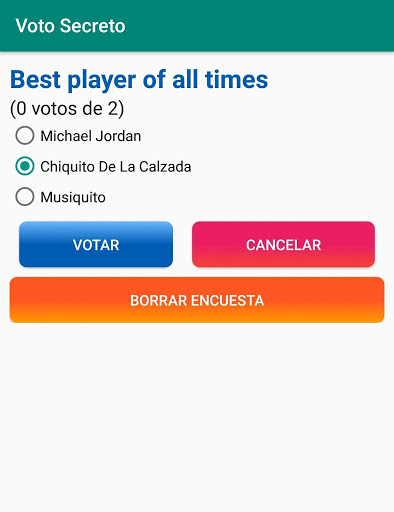This application allows you to ask a question to your friends and vote anonymously. So simple!... and so useful
