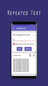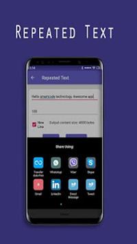 Text Repeater: Stylish Text Converter and Fonts for WhatsApp, Instagram and Facebook was conceived, groomed and developed by Spin For Cash . It is one kind of message repeater to send message repeatedly, and also you can set your repetition limit with new line text repetition or in the same line.With Text Repeater, you can write text with cool fonts, text designs and send in stylish text message on WhatsApp, Messenger or many social network. Chat with your friends,write your text, status, message or quote with special characters which looks very cool and beautiful. It is also stylish font generator.