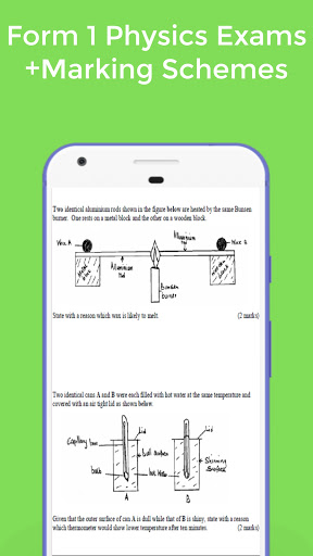 แอปพลิเคชันนี้ทำให้การสอบฟิสิกส์แบบฟอร์ม 1 ที่มีอยู่ในมาตรฐาน KCSE ที่ได้รับการจัดระเบียบตามระยะเวลา 1 และระยะที่ 2 และระยะที่ 3 และการสอบแต่ละครั้งมีรูปแบบการทำเครื่องหมายที่สามารถนำมาใช้เพื่อทำเครื่องหมายว่าการสอบนั้น