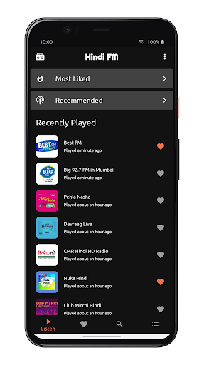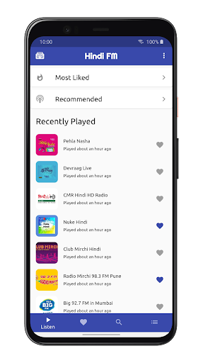 มันมีช่อง FM ชั้นนำทั้งหมดเช่นวิทยุคาราวาน, Fever FM Delhi 104 Live, Radio City Pune 91.1 FM Live, Radio One Pune 94.3 Live, Best FM, Red FM Delhi 93.5 FM Live, Red FM, Red FMPune 93.5 Live, AR Rahman Radio, Arijit Singh Radio, Air Urdu, Cina 1650 AM, Ama Radio, Nit Nut Radio, Radio Taj, Bolly Beatz Bollywood Radio, Namaste London Radio, Bollywood Bio, Radio SD FM, Nuke HindiNuke Hindi, Radio Udaan, Mirchi 90s Radio Bollywood, Filmy Mirchi Bollywood Radio, เครื่องดนตรีบอลลีวูด, ที่ดีที่สุดของ Ghazals ภาษาฮินดี, ที่ดีที่สุดของวิทยุบอลลีวูดป๊อปอินดี้, Akashvani 106.5 FM, Vividh Bharti โดย Prasar Bhartiฯลฯ ,