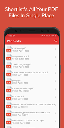 PDF Reader Is a free App which short lists all your PDF Files from storage and displays It all Into single app For easy access of every pdf in your storage.