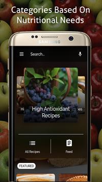 under the categories of Low calories, High protein, High fiber, High Antioxidants. Each recipe provides the nutritional values based on the quantity and type of ingredients used. The nutritional values includes the likes of protein, fiber, calories, carbohydrates, sodium, potassium, vitamins.